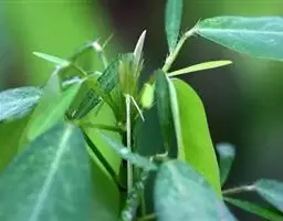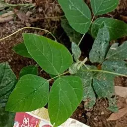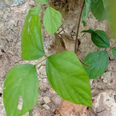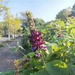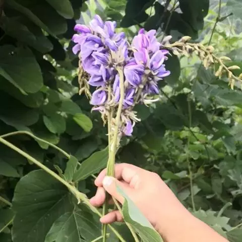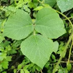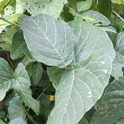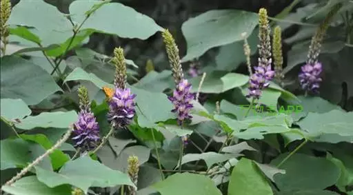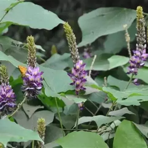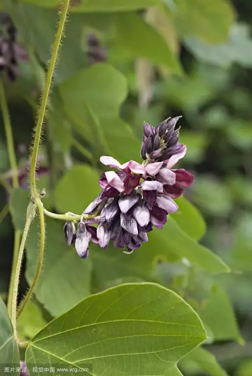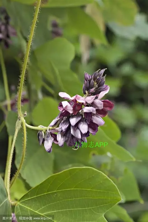 粗壮藤本,长可达8米,全体被黄色长硬毛,茎基部木质,有粗厚的块状根。羽状复叶具3小叶;托叶背着,卵状长圆形,具线条;小托叶线状披针形,与小叶柄等长或较长;小叶三裂,偶尔全缘,顶生小叶宽 卵形或斜卵形,长8-15(-19)厘米,宽5-12(-18)厘米,先端长渐尖,侧生小叶斜卵形,稍小,上面被淡黄色、平伏的蔬柔毛。下面较密;小叶柄 被黄揭色绒毛。荚果长椭圆形,长5-9厘米,宽8-11毫米,扁平,被褐色长硬毛。花期9-10月,果期11-12月。生于山坡草丛中或路旁及较阴湿的地方,或生于海拔1000-3200米的山沟林中。