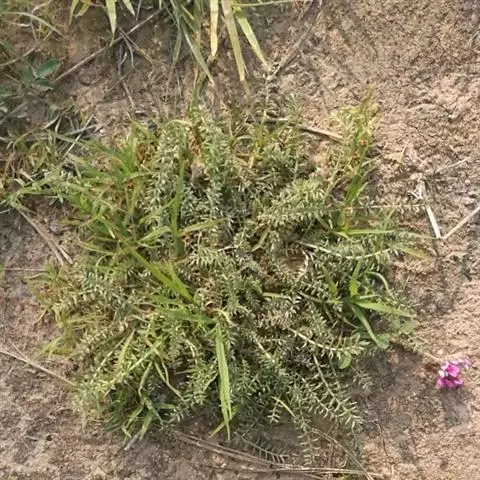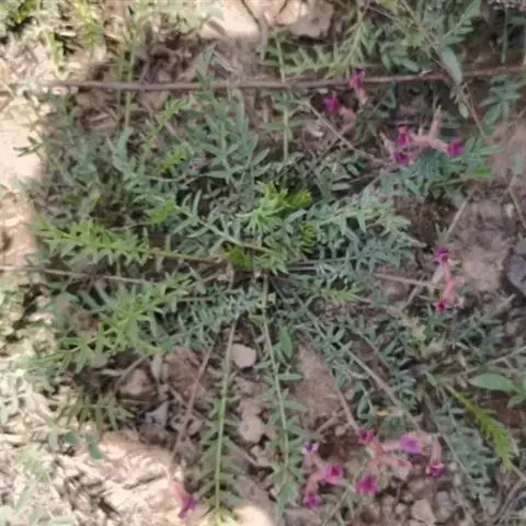 硬毛棘豆,是蔷薇目、豆科多年生草本,高20-55厘米,被长硬毛,灰绿色。根很长,褐色。茎极缩短。羽状复叶长15-25 (30) 厘米,坚挺。