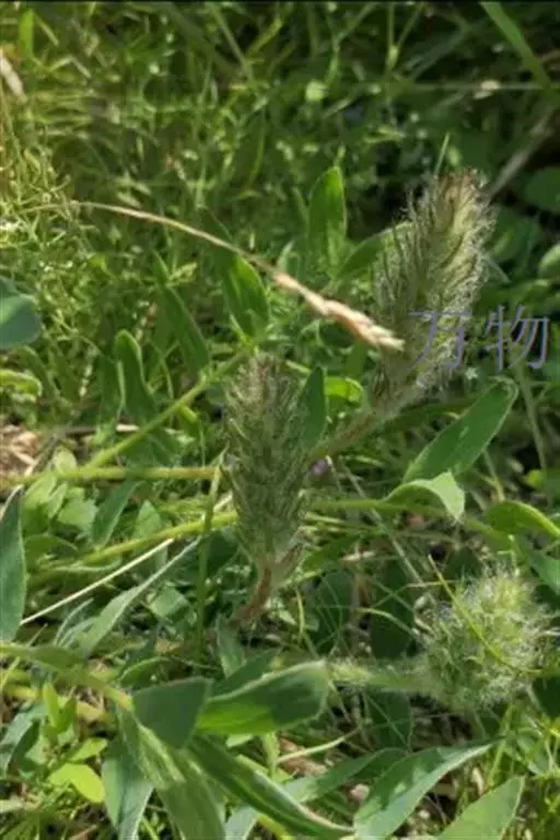 多花组成密长穗形总状花序;花葶粗壮,长于叶,长20-50毫米,密被长硬毛,或至无毛;苞片草质,线形或线状披针形,比花萼长,长7 (13) -8 (-20) 毫米,宽1-3毫米, 先端渐尖,疏被长硬毛;花长15-18毫米;花萼筒形或筒状钟形,长10-13 (-14) 毫米,宽3-4毫米,密被白色长硬毛,萼齿线形,长5-7毫米;花冠蓝紫色,紫红色或黄白色,旗瓣匙形,长约20毫米,宽约6毫米,先端圆形,基部下延成瓣柄,翼瓣长约17毫米,宽约3毫米,瓣片倒卵状长圆形,先端钝,龙骨瓣长约17毫米,瓣片斜长圆形,喙长1-3毫米;子房密被白色柔毛,胚珠20-24。