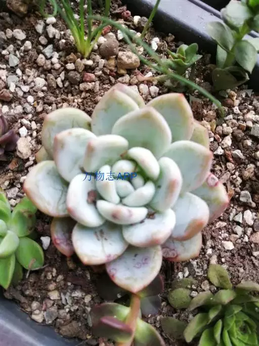 芙蓉雪莲的叶片较梦露和雪莲来说相对较长,小苗时就有明显区别,一般秋冬时叶片是粉嫩的红晕,相对来说比较均匀。成株一般比梦露和雪莲要高,没有她们那么紧凑,偏冷色,叶子比较尖,也没有梦露肥厚。 [1-2]