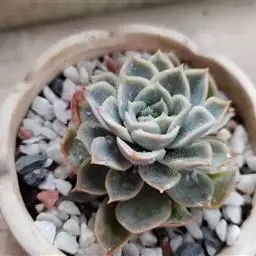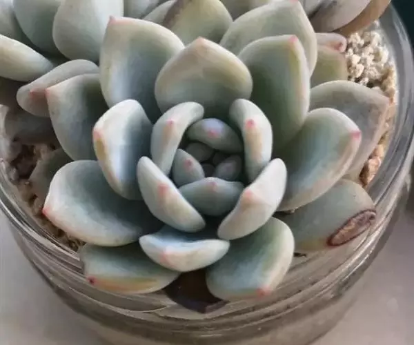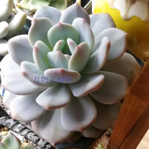 芙蓉雪莲是景天科拟石莲花属的植物。由于叶片表面覆盖着一层厚霜粉,通常呈现出白色;日照增多,温差增大后叶缘、叶尖会呈现出粉红色或橙红色。