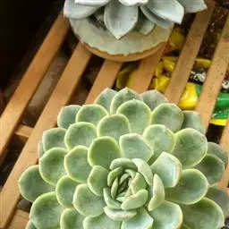 吉娃莲,景天科拟石莲花属,别名:吉娃娃,吉娃莲,植株小型,无茎的莲座叶盘非常紧凑。卵形叶较厚,带小尖,…
