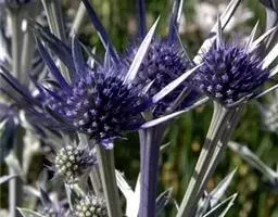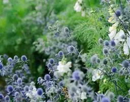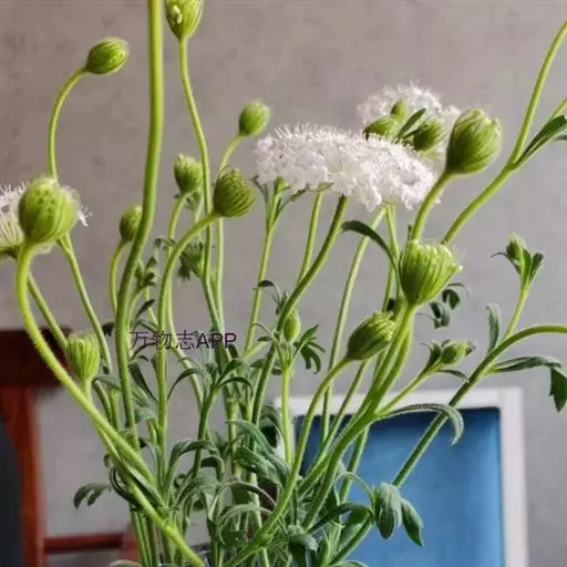 一年生草本。夏季开花。半耐寒。适生于光照或庇荫环境,喜肥沃、排水良好的土壤。需支撑。早春播种繁殖,其上需覆草。直立。多分枝。生长速度中等。高45cm,冠径20cm。叶深裂,淡绿色。头状花序球状。径5cm。花小。蓝色。夏季开放。