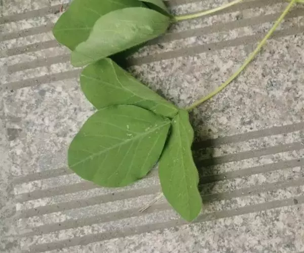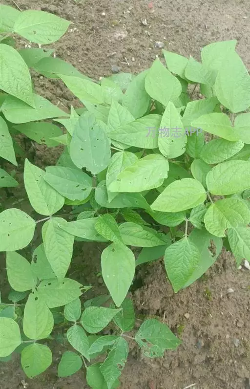 一年生草本,高30-90厘米。茎粗壮,直立,或上部近缠绕状,上部多少具棱,密被褐色长硬毛。叶通常具3小叶;托叶宽卵形,渐尖,长3-7毫米,具脉纹,被黄色柔毛;叶柄长2-20厘米,幼嫩时散生疏柔毛或具棱并被长硬毛;小叶纸质,宽卵形,近圆形或椭圆状披针形,顶生一枚较大,长5-12厘米,宽2.5-8厘米,先端渐尖或近圆形,稀有钝形,具小尖凸,基部宽楔形或圆形,侧生小叶较小,斜卵形,通常两面散生糙毛或下面无毛;侧脉每边5条;小托叶铍针形,长1-2毫米;小叶柄长1.5-4毫米,被黄褐色长硬毛。