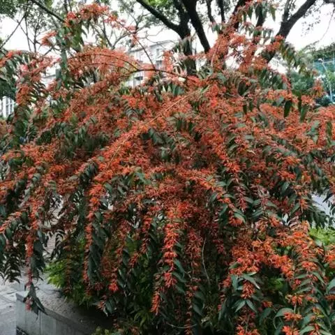 虾子花Kurz.)是千屈菜科虾子花属灌木植物。有长而披散的分枝;幼枝有短柔毛;叶革质,…