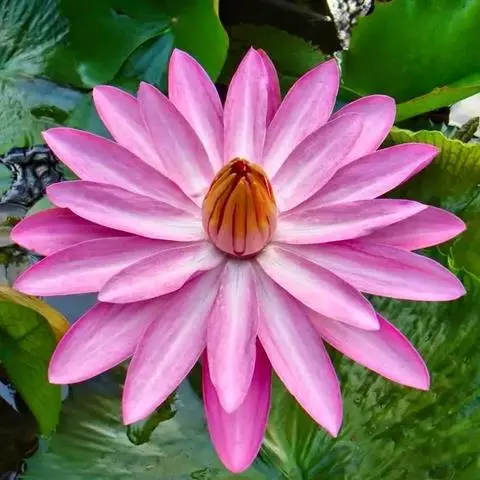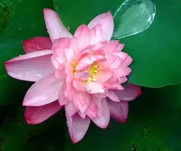 印度红睡莲(N. rubra):原产印度、孟加拉一带,花径20 cm 左右,大花型,挺水开放。花色桃红,花瓣20~25 枚,长卵形,萼片紫红色,脉纹明显。花梗、叶梗暗紫色。叶径42~40 cm,幼叶叶面紫红,成叶绿色,叶背有柔毛,叶缘波状,有锯齿,叶基深裂。雄蕊黄色,70~100 个,人工授粉可结实。