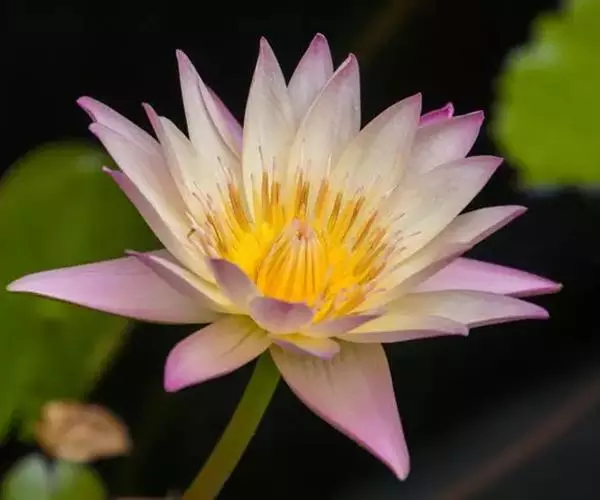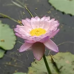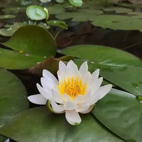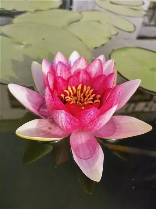 睡莲是多年生浮叶型水生草本植物,根状茎肥厚,直立或匍匐。叶二型,浮水叶浮生于水面,圆形、椭圆形或卵形,先端钝圆,基部深裂成马蹄形或心脏形,叶缘波状全缘或有齿;沉水叶薄膜质,柔弱。花单生,花有大小与颜色之分,浮水或挺水开花;萼片4 枚,花瓣、雄蕊多。果实为浆果绵质,在水中成熟,不规律开裂;种子坚硬深绿或黑褐色为胶质包裹,有假种皮。品种不同其形态特征不同。