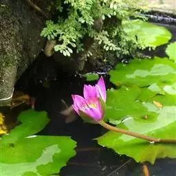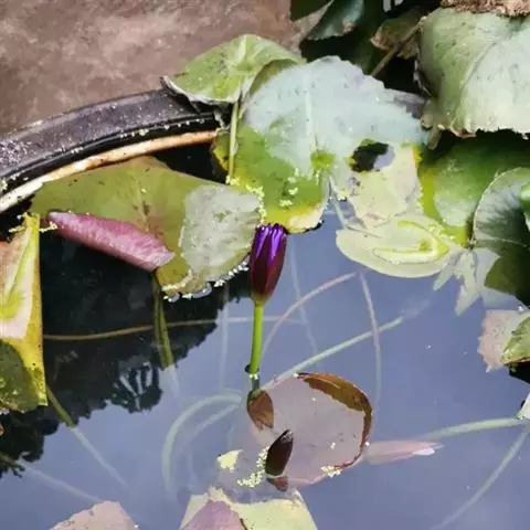 栽植时选用高50cm左右、口径尽量大的无底孔花缸,花盆内放置混合均匀的营养土,填土深度控制 盆栽睡莲 在30~40cm,便于储水。将生长良好的繁殖体埋入花缸中心位置,深度以顶芽稍露出土壤即可。栽种后加水但不加满,以土层以上2~3cm最佳,便于升温,以保证成活率。随着植株的生长逐渐增加水位。此方法的优点是管理方便,缺点是在京津地区冬季越冬困难,需移入温室或沉入水池。