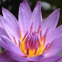 睡莲(学名:Nymphaea L.),多年生水生草本;根状茎肥厚。叶柄圆柱形,细长。叶椭圆形,浮生于水面,全缘,叶基心形,叶表面浓绿,背面暗紫。叶二型:浮水叶圆形或卵形,基部具弯缺,心形或箭形,常无出水叶;沉水叶薄膜质,脆弱。花单生,浮于或挺出水面;花萼四枚,绿色;花瓣通常八片。果实倒卵形,长约3厘米。花大形、美丽,浮在或高出水面,白天开花夜间闭合;萼片近离生;花瓣白色、蓝色、黄色或粉红色,成多轮,有时内轮渐变成雄蕊;药隔有或无附属物;心皮环状,贴生且半沉没在肉质杯状花托,且在下部与其部分地愈合,上部延伸成花柱,柱头成凹入柱头盘,胚珠倒生,垂生在子房内壁。浆果海绵质,不规则开裂,在水面下成熟;种子坚硬,为胶质物包裹,有肉质杯状假种皮,胚小,有少量内胚乳及丰富外胚乳。