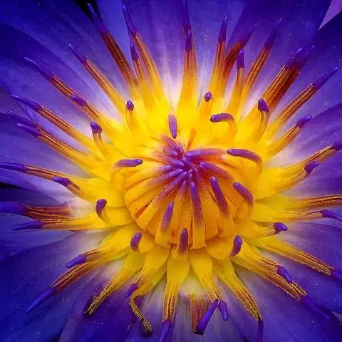 睡莲的花朵由萼片、花瓣、雌雄蕊、花柱、心皮、花柄等器官所组成。花单生,为两性。其萼片4~5枚,呈绿色或紫红色,或绿中带黑点,形状有披针形、窄卵形,或者矩圆形。花蕾呈长桃形、桃形;花瓣通常有卵形、宽卵形、矩圆形、长圆形、倒卵形、宽披针形等,瓣端稍尖,或略钝。花色有红、粉红、蓝、紫、白等。花瓣有单瓣、多瓣、重瓣。因而花瓣的大小、形状、颜色均因品种而异。从此构成了绚丽的花态。子房上位至周位,花开前雄蕊裹住心皮上方,成熟后则张开成镰刀状;萼片、花瓣、雄蕊在花托与子房壁的上方呈螺旋排列。心皮则成环状排列包埋于花托之内且呈合生状态,上部花柱分离、柱头丝状、以乳状突出物为中心,呈漏斗状,成熟时分泌出柱头物,而柱头物主要含葡萄糖、果糖及氨基酸,以吸引昆虫授粉。