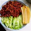 京酱肉丝,是一道知名度很高的菜肴,它是北京菜中的经典代表菜之一。制作时选用猪瘦肉为主料,辅以甜面酱…