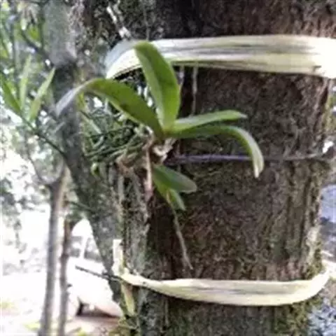 风兰 H.H.Hu):植株高8-10厘米。茎长1-4厘米,稍扁,被叶鞘所包。叶厚革质,狭长圆状镰刀形。…