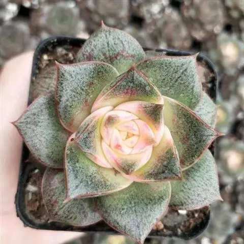 花乃井是景天科拟石莲花属的多肉植物,原产于墨西哥。株型小巧,叶片饱满,在阳光充足、温差大的环境下叶…