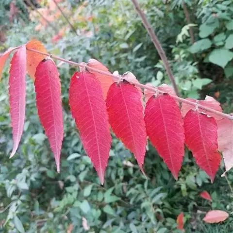 火炬树是漆树科盐麸木属落叶灌木或小乔木;株高,树形不整齐;小枝粗壮,红褐色,密生绒毛;叶轴无翅,…