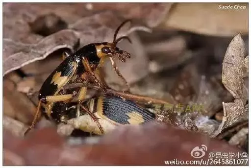 耶气步甲,鞘翅目, 步甲科(Carabidae),屁步甲属(pheropsophus),又称屁步甲,头、前胸背板棕黄色;头顶有心形黑斑;小盾片和鞘翅黑色,各鞘翅肩部和中部有1黄色斑;各鞘翅有7条纵隆脊,受惊和捕食时会从肛门里放出一种有毒雾气。