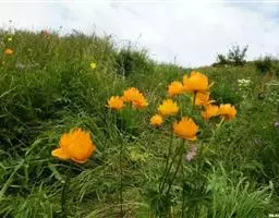 长白金莲花是毛茛科,金莲花属多年生草本植物,植株全部无毛。茎高可达55厘米,基生叶有长柄,…