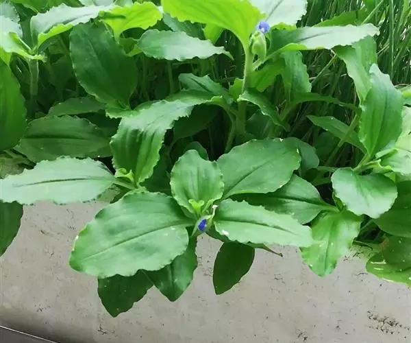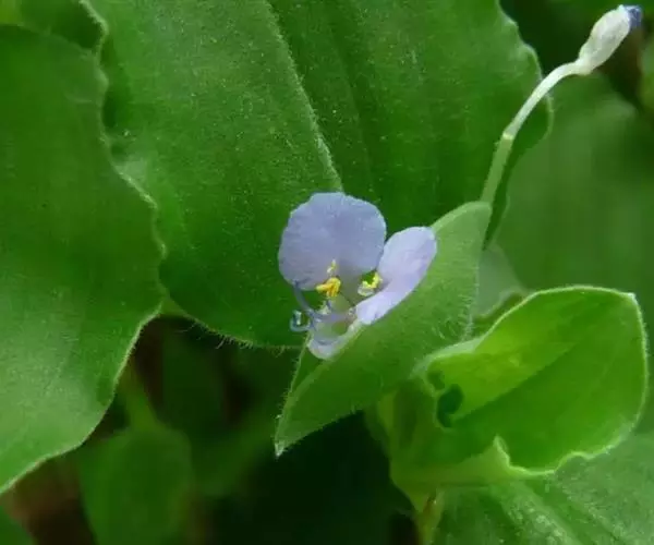(学名:Commelina bengalensis Linn.):多年生披散草本。茎大部分匍匐,节上生根,上部及分枝上部上升,长可达70厘米,被疏柔毛。叶有明显的叶柄;叶片卵形,近无毛。总苞片漏斗状,与叶对生,常数个集于枝顶,下部边缘合生,长8-12毫米,被疏毛;花序下面一枝具细长梗,具1-3朵不孕的花,伸出佛焰苞,上面一枝有花数朵,结实,不伸出佛焰苞;花瓣蓝色,圆形,长3-5毫米;内面2枚具长爪。蒴果椭圆状,3室,腹面2室每室具两颗种子。种子长近2毫米,多皱并有不规则网纹,黑色。花期夏秋。