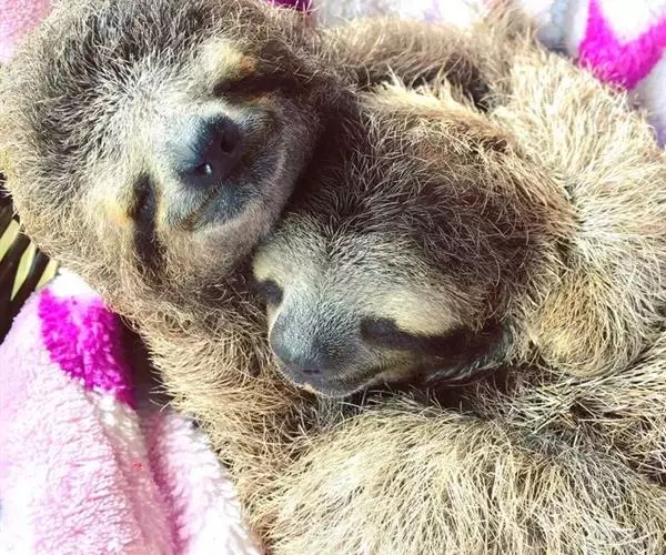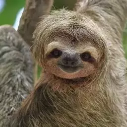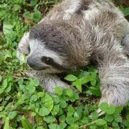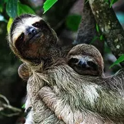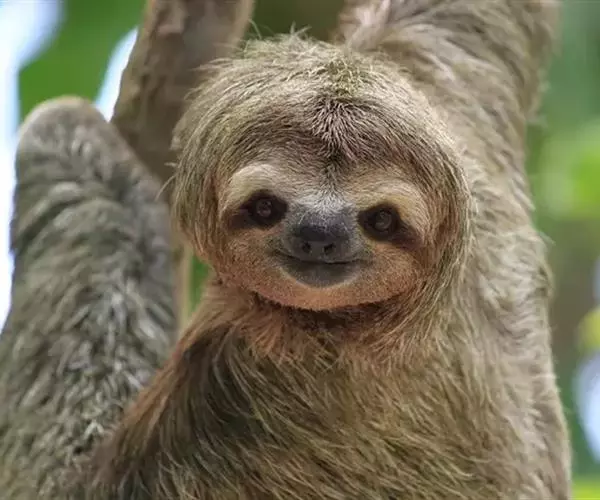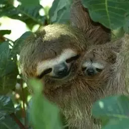 树懒(学名:Folivora):是哺乳纲披毛目下树懒亚目动物的通称,哺乳动物,共有2科2属6种。形状略似猴,动作迟缓,常用爪倒挂在树枝上数小时不移动,故称之为树懒。树懒是唯一身上长有植物的野生动物,它虽然有脚但是却不能走路,靠得是前肢拖动身体前行。分布于南美洲。毛被蓬松长厚;头短圆,耳小并隐于毛内;尾短;前肢3指,后肢3趾,均有可屈曲的锐爪,前肢长于后肢;上颚有齿5对,下颚4对,共18枚;胃分数室;颈椎9节,为哺乳动物中最多者;全身毛色灰褐因身上毛被附着有藻类植物,外表呈现绿色。