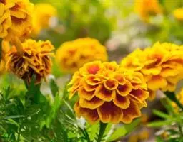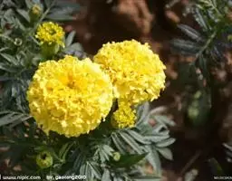 万寿菊是菊科万寿菊属一年生草本植物,别名孔雀菊、缎子花、臭菊花、西番菊、红黄草、小万寿菊、臭芙蓉、孔雀草。万寿菊茎近基部分枝。叶羽状分裂,长5-10厘米,宽4-8厘米,裂片长椭圆形或披针形,具锐齿,上部叶裂片齿端有长细芒,叶缘有少数腺体。头状花序单生,径5-8厘米,花序梗顶端棍棒状。总苞长1.8-2厘米,径1-1.5厘米,杯状,顶端具尖齿。舌状花黄或暗橙黄色,长2.9厘米,舌片倒卵形,长1.4厘米,基部成长爪,先端微弯缺。管状花花冠黄色,长约9毫米,冠檐5齿裂。瘦果线形,被微毛;冠毛有1-2长芒和2-3短而钝鳞片。花期7-9月。万寿菊中国各地均有栽培,在广东和云南南部、东南部已归化,国外原产墨西哥。万寿菊对土壤要求不严,但以肥沃疏松排水良好的土壤为好。耐移栽,种子发芽适温21-24℃,植株生长适合温度为20-29℃。喜温暖和阳光充足的环境,不