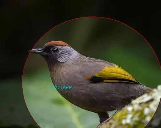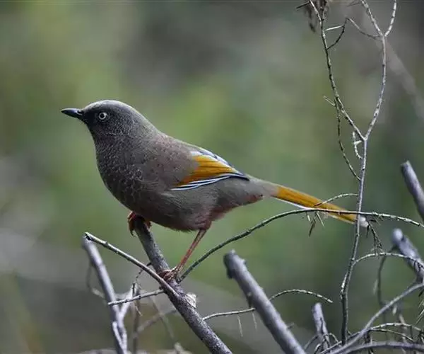 橙翅噪鹛(学名:Garrulax elliotii): 中型鸟类,体长22-25厘米。头顶深葡萄灰色或沙褐色。上体灰橄榄褐色,外侧飞羽外翈蓝灰色、基部橙黄色,中央尾羽灰褐色,外侧尾羽外翈绿色而缘以橙黄色并具白色端斑。喉、胸棕褐色,下腹和尾下覆羽砖红色。