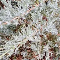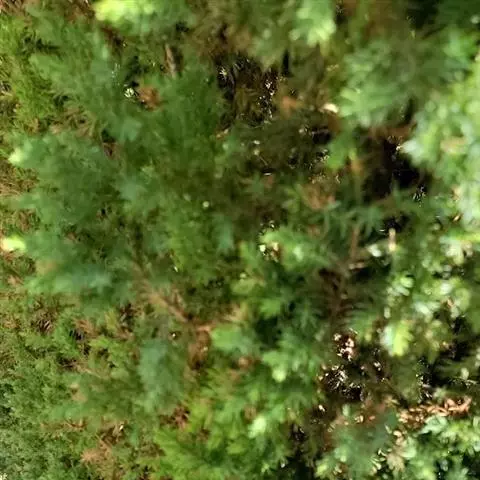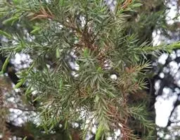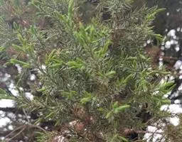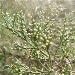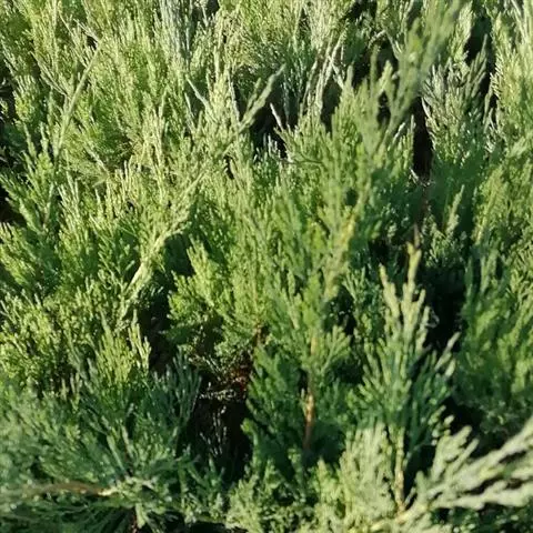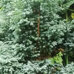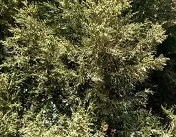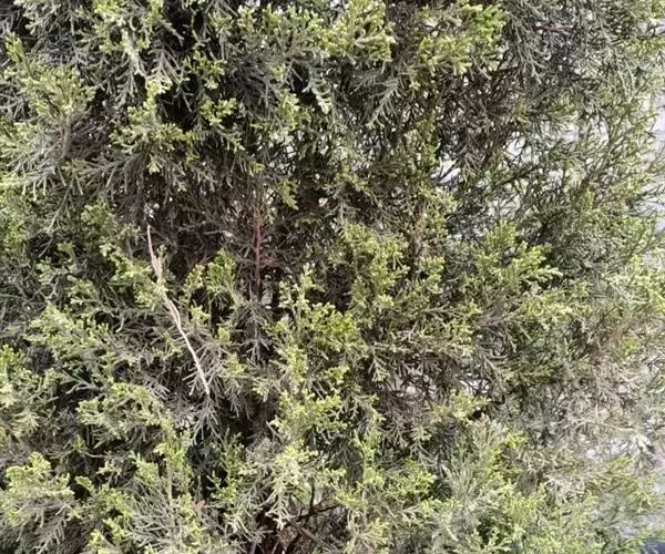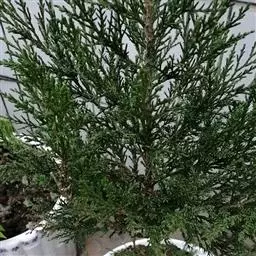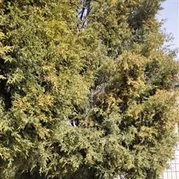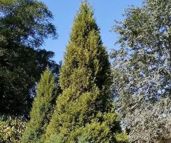 2、金叶桧(cv.Aurea)栽培变种,植株呈直立窄圆锥形灌木状,全为鳞形叶,新生也全部为金黄色。直立灌木,鳞叶初为深金黄色,后渐变为绿色。