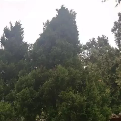 清柏,“清者一株挺直,茂如翠盖”(《浮生六记》),树龄近两千年,却无丝毫衰败之态;树干粗大,要数人合抱;树身挺拔,立地擎天,不用旁枝扶持,像独立的仙鹤;树纹是一条条直线,向上伸展。 奇柏,“奇者秃顶而扁阔,半朽如掌”(《浮生六记》),庞大树身斜高左上方,因被雷劈过,主干折断空腹,如剖瓜瓠,宽处可容人立;树身南北两侧,折而未断的树皮,横斜或倒挂,皮生枝,枝生枝,青枝绿叶,枝杈丛生,一直拖到地上;远观若江上青峰,绿云出岫,称之为奇,毫不过分。 古柏,“古者体似旋螺,枝干皆然”(《浮生六记》),是一株左扭柏,树纹粗壮,一律向左,盘旋而上,古穆庄重,风骨不凡;看着它,我不由得想起两位唐人:魏征、颜真卿。 怪柏,“怪者卧地三曲,形同之字”(《浮生六记》),看外形,已不能算一棵树了;不知何时,一道雷电,将它从上至下,一分为二,两爿树身各分东西,一爿远离母体,卧地三曲,犹生枝叶;一爿就地卧倒,如蛟龙昂首,作势欲飞。