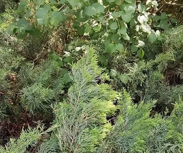 5、鹿角桧(cv.Pfutzeriana)丛生灌木,中心低矮,外侧枝发达斜向外伸长,入鹿角分叉,多为紧密的鳞叶。丛生灌木,千枝自地面向四周斜上伸展。华东地区多栽培作园林树种。