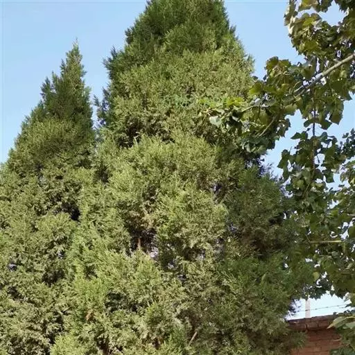 6、塔桧(cv.Pyramidalis)树冠塔状圆柱形;枝不平展,多贴主干斜生,小枝密集,2型叶,以钻形叶为多。亦名圆柱桧。枝向上直展,密生,树冠圆柱状或圆柱状尖塔形;叶多为刺形稀间有鳞叶。华北及长江流域各地多栽培作园林树种。