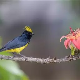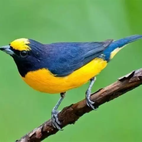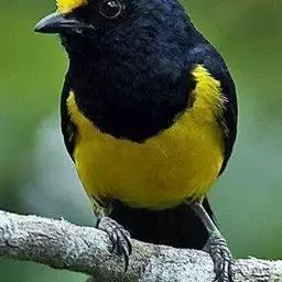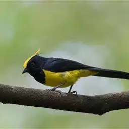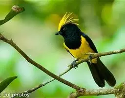 冕雀(Melanochlora sultanea)体极大(20厘米),具蓬松的 冕雀 黄色长型冠羽。头部黑色、下体黄,上体黑、翅黑。雌鸟头部色淡为深橄榄色,上体沾橄榄色,翅黑。