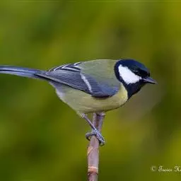 大山雀(Parus major),俗名仔仔黑、白脸山雀、仔伯、家qiao。为山 大山雀 雀科中体型最大的鸟类,背羽绿灰色,头黑且两侧白色,形成明显的白斑状,故名白脸山雀。腹面白色,正中则纵贯以黑色宽纹,加以前胸黑缘,故形成丁形的黑襟。大山雀在国内分布广泛而且数量较大,多栖于山区针叶林、针阔混交林或阔叶林间以及丘陵果园及耕作区等地,在庭园林间亦能见到,为留鸟。雏鸟离巢后常结成小群活动,有时亦与其他山雀混成数十只大群,秋冬季常迁飞到平原地带林区。常栖于树枝上发出“仔黑,仔黑,仔黑”或“仔仔黑,仔仔黑,仔仔黑黑黑”。
