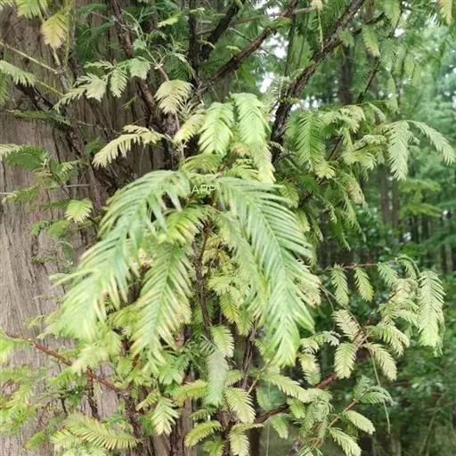 水杉(学名:Metasequoia glyptostroboides Hu & W. C. Cheng):裸子植物杉科。落叶乔木,小枝对生,下垂。叶线形,交互对生,假二列成羽状复叶状,长1-1.7厘米,下面两侧有4-8条气孔线。雌雄同株。球果下垂,近球形,微具4棱,长1.8-2.5厘米,有长柄;种鳞木质,盾形,每种鳞具5~9种子,种子扁平,周围具窄翅。