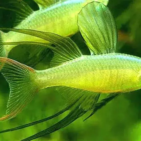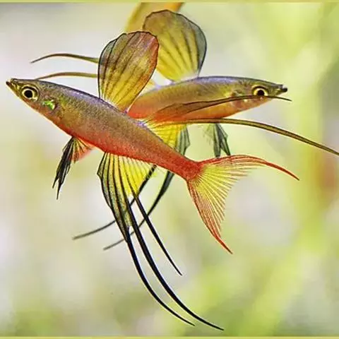 叉尾斗鱼,体形与圆尾斗鱼相似。腹鳍有1根分节鳍条特别延长,雄鱼鳍条延长尤甚,尾鳍叉形。…