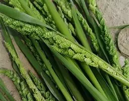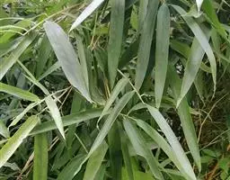 叶3至15片集生于枝顶;叶鞘光滑无毛或具极少量小毛;叶耳及鞘口繸毛均无;叶舌极发达,高可达10-15毫米,厚膜质或纸质,下部厚硬,顶部截形,干后脆而易于折断;叶柄较长,无毛或仅上面具少量短毛;叶片纸质或较厚,披针形,长6-25厘米,宽1.5-3.5厘米,顶端渐尖,基部不对称,上表面深绿色而具光泽,无毛或沿中脉的中下部具粗毛,下表面粉绿色,无毛。花枝未见。笋期4-5月。 [5-6]