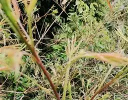 竿散生,直立,高1-2米或稍高,直径5-10毫米;节间圆筒形,长8-10厘米,幼竿具疣毛,老熟后则毛脱落,惟节下方可有较密宿存的向下刺毛;竿环极为隆起;节内长可达0.5厘米;箨环明显,具密集向下的棕色刺毛;分枝较开展(与竿的夹角大多在200以上),次级枝每节仅为1枝。