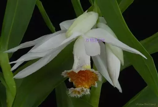 笋兰(学名:Thunia alba (Lindl.) Rchb. f.):地生或附生草本,高30-55厘米,地下具粗短根状茎及大量纤维根。茎直立,较粗壮,圆柱形,通常具10余枚互生。叶薄纸质,狭椭圆形或狭椭圆状披针形。总状花序长4-10厘米,具2-7朵花;花苞片大,宽椭圆形至狭椭圆形,舟状,薄革质,宿存;花大,白色,唇瓣黄色而有橙色或栗色斑和条纹,仅边缘白色;萼片狭长圆形,先端渐尖;花瓣与萼片近等长,稍狭;唇瓣宽卵状长圆形或宽长圆形,几不裂。蒴果椭圆形。花期6月。