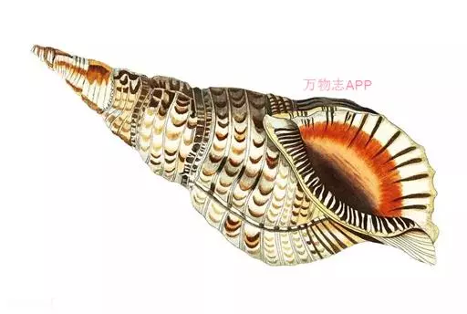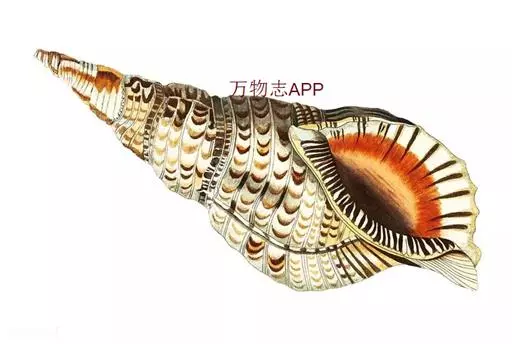 贝壳表面光亮,壳表为乳白色至黄褐色,并具有半月形或三角形的深褐色斑纹和新月形斑纹。壳口卵圆形,内面橘红色,具瓷光。外唇齿间有白色沟槽。轴齿白色,齿间为深褐色。厣角质,生长纹清细,核位于中央。 足部异常发达,肉可供食用。