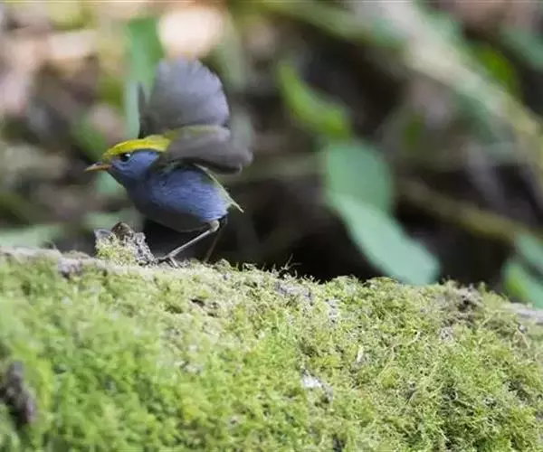 金冠地莺:形态与灰腹地莺相似,上体橄榄绿,前额至头顶渲染亮金黄色;下体几乎纯暗石板灰色,…