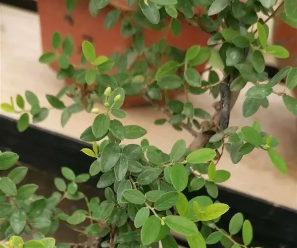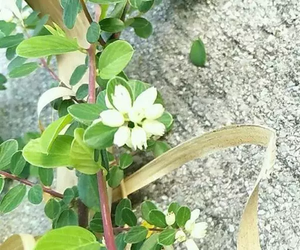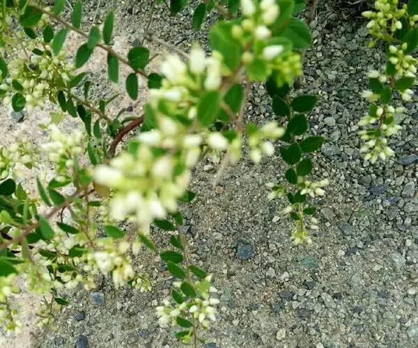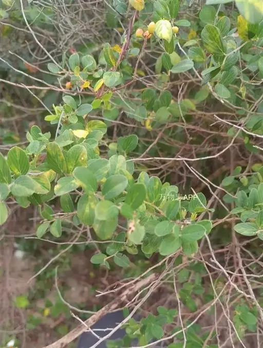 藤状或矮灌木,高达21米;小枝圆柱状,黄绿色,被密短柔毛。叶纸质,矩圆形或椭圆形,长5-20毫米,宽4-12毫米,顶端圆形或钝,具小尖头,基部圆形,上面绿色,下面浅绿色,两面无毛,侧脉每边4-5,稀6条;叶柄短,长不超过2毫米,被短柔毛;托叶披针形,稍长于叶柄,宿存。花白色,长4-5毫米,无毛,花梗长2.5-4毫米,无毛,通常数个至10余个密集成顶生聚伞总状花序,或有时1-5个簇生于花序下部叶腋,近无总花梗;花芽卵圆形,长过于宽,顶端钝;萼片条形或狭披针状条形,顶端尖,萼筒短,盘状;花瓣匙形,顶端钝。核果圆柱形,顶端钝,长5-6毫米,直径约3毫米,成熟时黑色或紫黑色,基部有宿存的花盘和萼筒;果梗长4.5-5毫米,被短柔毛。花期7-10月,果期11月。