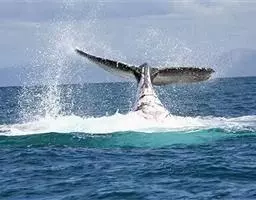 露脊鲸通 露脊鲸 常单独或2~3头一起游泳,并接近海湾和岛屿周围,游泳速度很慢,呼气时喷起的雾柱呈两支,高达4~6米,大潜水时把尾鳍举出水面以上。