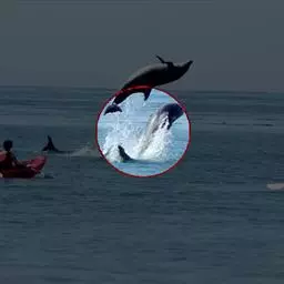 真海豚,身体细而流线型。体色十分复杂而独特,通常十字交叉型,黄褐色在前灰色在后,背面黑色向下延伸,…