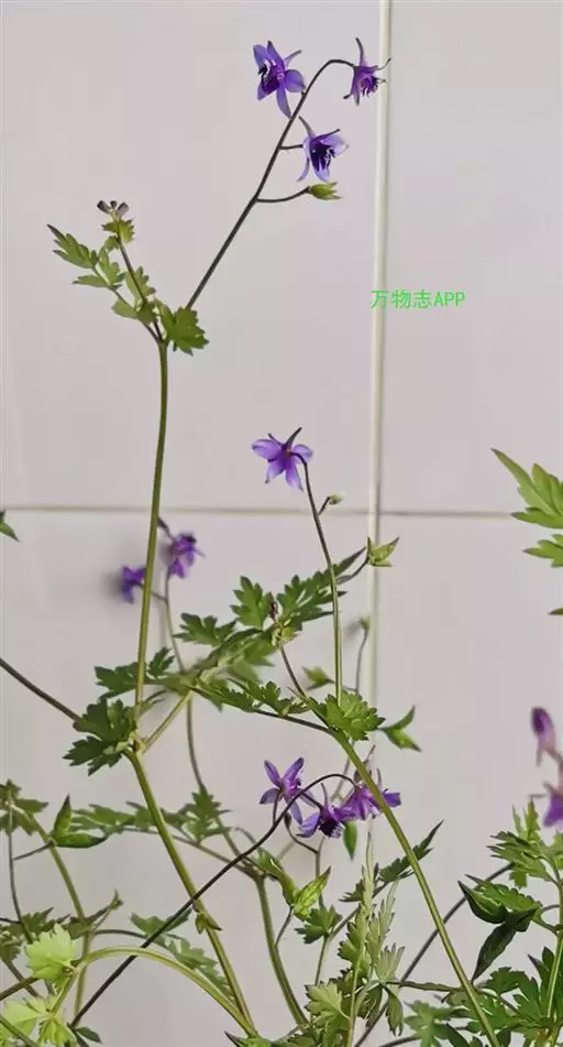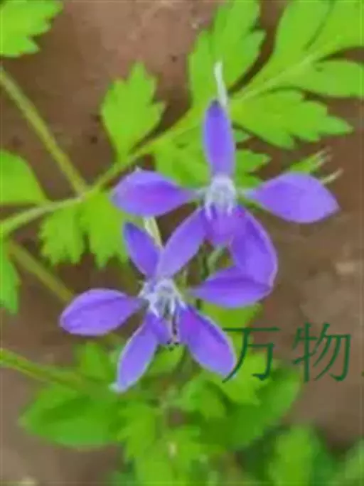 还亮草(学名:Delphinium anthriscifolium Hance)是毛茛科,翠雀属多年生草本植物,茎高可达78厘米,等距地生叶,分枝。羽状复叶,近基部叶在开花时常枯萎;叶片菱状卵形或三角状卵形,羽片狭卵形,表面疏被短柔毛,背面无毛或近无毛;叶柄无毛或近无毛。总状花序,有花多达15朵;轴和花梗短柔毛;基部苞片叶状,小苞片生花梗中部,披针状线形,萼片堇色或紫色,椭圆形至长圆形,退化雄蕊与萼片同色,无毛,种子扁球形,3-5月开花。