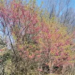 紫叶稠李(学名:Padus virginiana ‘Canada Red’)属蔷薇科、稠李属Padus virginiana的栽培种,落叶乔木,高可达15米,叶片初生为绿色、有光泽,秋后变为红色,整个生长季节,叶片变色期较长。花白色。果球形,较大,成熟时为紫黑色,4月底-5月中旬开花,7-8月结果。