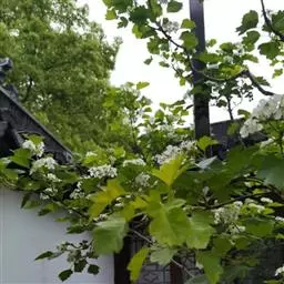 亭阁、庭院点缀:于庭院大厅进门口左右侧边、大厅的玻璃窗外、亭阁周边、假山景石、墙角转弯处等位置,根据面积大小,片植或丛植一小片紫叶稠李突显出清幽高雅,幽而不暗,闹而不喧,心境顿感平和,别有一番情趣。紫叶稠李嫩叶鲜绿,老叶紫红,与其它树种搭配,更是红绿相映成趣。
