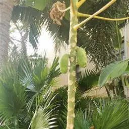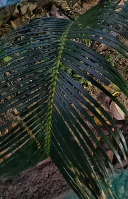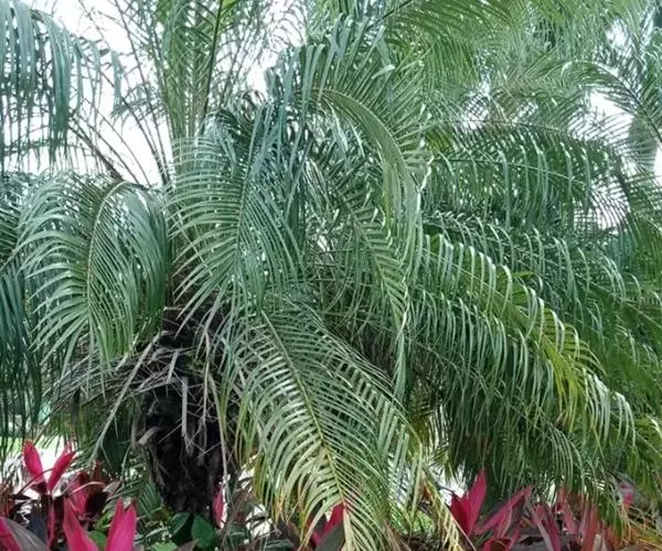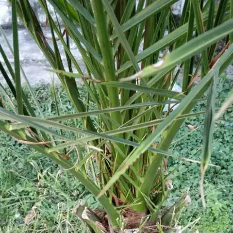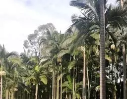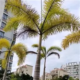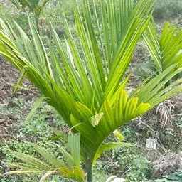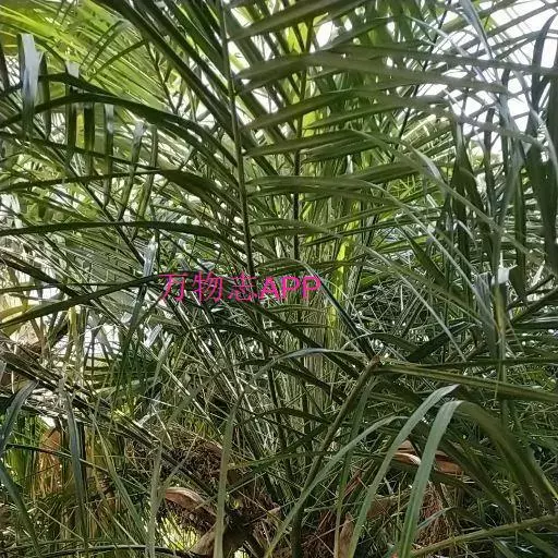 茎丛生或单生,高2-5米,直径达30厘米以上。叶长达2米;羽片线形,长15-35厘米,宽10-15毫米,单生或2-3片聚生,呈4列排列。佛焰苞长15-20厘米,褐色,不开裂为2舟状 瓣;花序梗长60厘米以上;雌花序分枝短而粗壮,长7-15厘米;雄花近白色;花萼长1-1.5毫米,顶端具3齿;花瓣3,长4-5毫米,宽1.5-2毫米;雄蕊6;雌花花萼长约1毫米,顶端不具三角状齿;花瓣圆形,直径约2毫米;心皮3,卵形,长约15毫米,宽8毫米。果实长圆形,长l.5-2厘米,成熟时紫黑色,基部具宿存的杯状花萼。花期4-5月,果期6-10月。