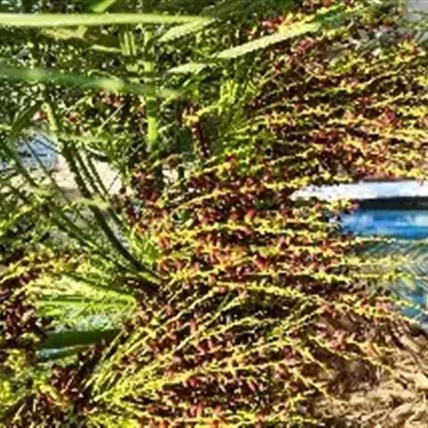 刺葵(Phoenix hanceana Naud.)棕榈科植物,茎丛生或单生,高2-5米,叶长达2米,羽片线形,雌花序分枝短而粗壮,雄花近白色,花瓣圆形,果实长圆形,长1.5-2厘米,成熟时紫黑色,花期4-5月,果期6-10月。刺葵产于台湾、广东、海南、广西和云南等省区,生于海拔800-1500米的阔叶林或针阔混交林中。刺葵树形美丽,可作庭园绿化植物,果可食,嫩芽可作蔬菜,叶可作扫帚。