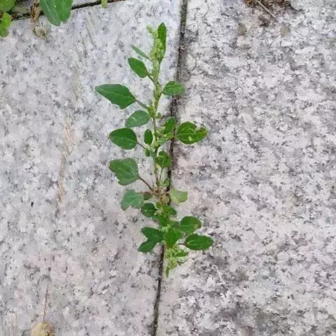 凹头苋,苋科苋属植物。草本。茎伏卧而上升,淡绿色或紫红色。叶片卵形或菱状卵形,顶端凹缺,有1芒尖。…