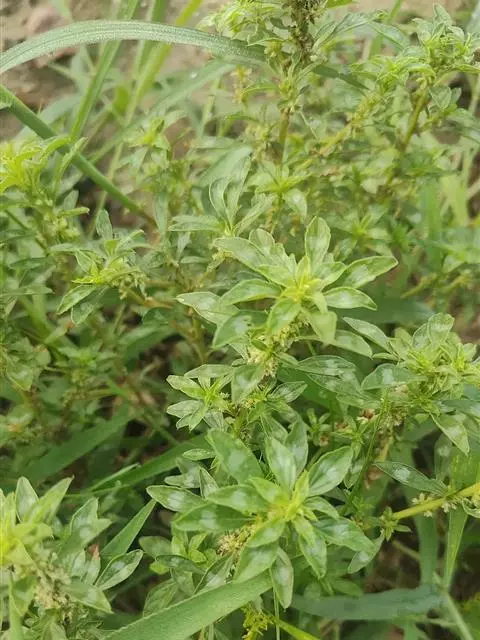 反枝苋是苋科苋属的一年生草本植物。株高达1米;茎密被柔毛;叶菱状卵形或椭圆状卵形,先端锐尖或尖凹,…