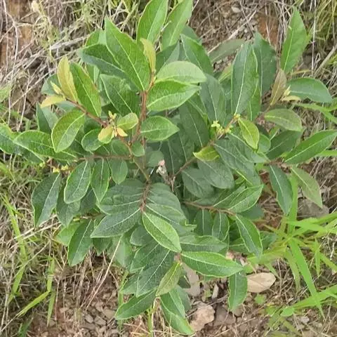 常绿灌木或乔木,通常高1-3米,稀7-12米;除子房和蒴果外,全株均无毛。叶片革质,椭圆形、长圆形或长圆状披针形,长6-16厘米,宽2.5-6厘米,顶端钝或急尖,基部急尖或阔楔形而稍下延,两侧近相等,上面深绿色,下面淡绿色,干后黄绿色;侧脉每边5-7条;叶柄长3-5毫米;托叶三角状披针形,长2.5-3毫米。