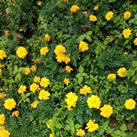 万寿菊是菊科万寿菊属一年生草本植物,别名孔雀菊、缎子花、臭菊花、西番菊、红黄草、小万寿菊、臭芙蓉、孔雀草。万寿菊茎近基部分枝。叶羽状分裂,长5-10厘米,宽4-8厘米,裂片长椭圆形或披针形,具锐齿,上部叶裂片齿端有长细芒,叶缘有少数腺体。头状花序单生,径5-8厘米,花序梗顶端棍棒状。总苞长1.8-2厘米,径1-1.5厘米,杯状,顶端具尖齿。舌状花黄或暗橙黄色,长2.9厘米,舌片倒卵形,长1.4厘米,基部成长爪,先端微弯缺。管状花花冠黄色,长约9毫米,冠檐5齿裂。瘦果线形,被微毛;冠毛有1-2长芒和2-3短而钝鳞片。花期7-9月。万寿菊中国各地均有栽培,在广东和云南南部、东南部已归化,国外原产墨西哥。万寿菊对土壤要求不严,但以肥沃疏松排水良好的土壤为好。耐移栽,种子发芽适温21-24℃,植株生长适合温度为20-29℃。喜温暖和阳光充足的环境,不