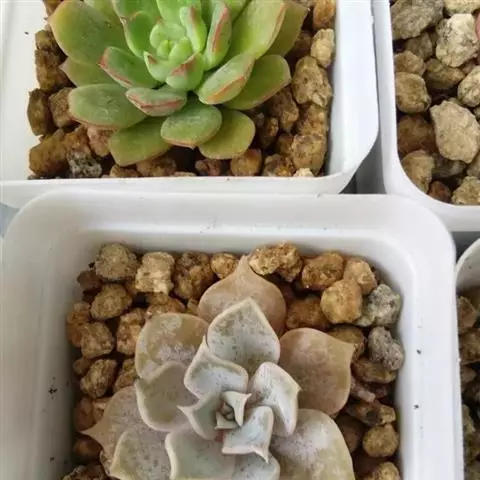 大和锦是景天科拟石莲花属的多肉植物。肉质叶排成紧密的莲座状,广卵形至散三角卵形,背面突起呈龙骨状,…